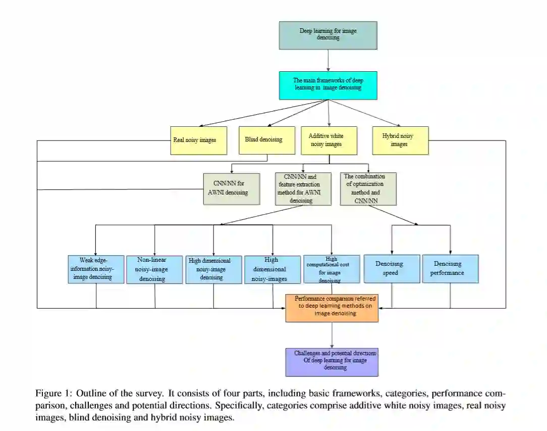 深度学习技术在图像降噪方面获得了极大的关注。但是,处理噪声的不同类型的学习方法有很大的差异。具体来说,基于深度学习的判别式学习可以很好地解决高斯噪声。基于深度学习的优化模型方法对真实噪声的估计有很好的效果。迄今为止,很少有相关研究来总结用于图像去噪的不同深度学习技术。在本文中,作者对图像去噪中不同深度技术进行了比较研究。我们首先对(1)用于加白噪声图像的深卷积神经网络(CNN),(2)用于真实噪声图像的深CNN,(3)用于盲目去噪的深CNN和(4)用于混合噪声图像的深CNN进行分类,这是噪声,模糊和低分辨率图像的组合。然后,又分析了不同类型的深度学习方法的动机和原理。接下来,将在定量和定性分析方面比较和验证公共去噪数据集的最新方法。最后,论文指出了一些潜在的挑战和未来研究的方向。