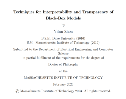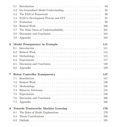 接下来,我们探讨了解释哪些实例的问题,并将透明度示例观点作为回答这个问题的方法。我们展示了这种方法在揭示图像分类器和机器人控制器的隐藏属性方面的优势。最后,本论文确定了未来研究的方向,并倡导将模型可解释性和透明度更紧密地融入到可信赖机器学习研究的生态系统中,该生态系统还包括公平性、鲁棒性和隐私等方面的努力。