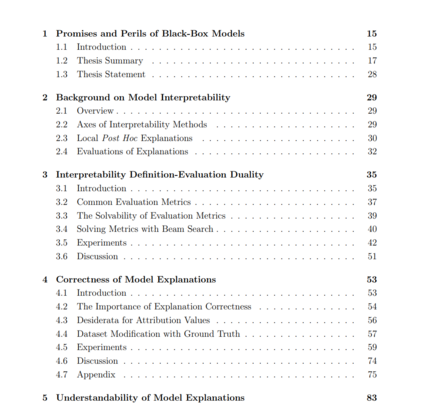 过去的十年见证了机器学习在诸多领域(如医疗保健、金融和司法)的巨大进步。然而,近年来的技术进步主要依赖于深度神经网络,这种网络的不透明性阻碍了人们对这些模型的检查能力。此外,一些法律要求正在提议,要求在部署和使用模型之前必须先理解模型。这些因素推动了提高这些模型可解释性和透明度的研究。本论文在这个方向上做出了一些贡献。