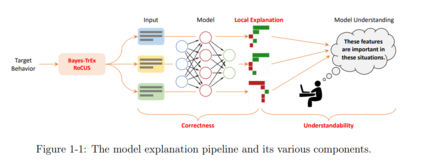 标准的模型理解方法从流程的第二阶段开始,在这个阶段我们已经确定了一些要研究的输入实例。从这里开始,生成局部解释来说明模型对这些输入的推理过程。在本论文中,“模型推理”主要指的是每个特征的重要性。接下来,这些局部解释被人类解释消费者总结为更全局和普遍的模型理解,以便在后续决策中作出相应调整(例如,由于种族歧视而放弃模型)。在简要概述模型可解释性研究的现状之后,我们将在第2章中关注生成和评估局部解释的方法。在第3章中,我们提出了一种生成解释的新范式,并讨论了它的影响。然后,在第4章和第5章中,我们介绍了模型解释的两个关键属性,即正确性和可理解性,并提出了评估这些属性的方法,并讨论了这些发现对未来模型解释研究的影响。最后,本论文还倡导在模型理解流程的更早阶段开始。我们不应从任意或随机的输入实例开始,而应明确考虑每个模型行为,如矛盾预测或高置信度错误,并将它们用于指导解释输入的选择。具体而言,第6章和第7章介绍了Bayes-TrEx和RoCUS框架,以找到符合某种目标模型行为的输入实例。从某种意义上说,这两个框架回答了“解释什么”的问题。