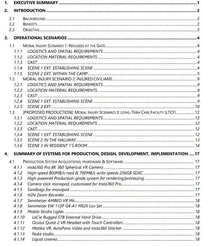 结合先前关于增强心理训练临场感与沉浸感的建议(例如沉浸式道德伦理决策场景),将DSIE技术融入CAF道德伦理决策与韧性训练,可通过训练中更高的认知与情感投入促进知识获取、强化学习效果并提升技能的长期留存。本项目首次探索虚拟现实(VR)在补充CAF人员道德伦理决策训练中的效用,旨在提供一个增强道德意识的平台以呈现道德伦理困境。为评估沉浸式360度VR训练系统的可行性与潜在影响,研究团队编写并制作了两组道德伦理场景。这些内容构成了基础沉浸式素材,用于后续对比360度VR场景与现有纸质场景的实验研究,目标包括:评估360度VR干预相较于当前训练的增量价值;衡量其对道德伦理决策的影响;以及跨领域场景的扩展性。