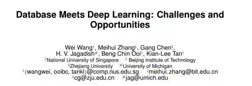 深度学习最近变得非常流行,因为它在许多复杂的数据驱动应用程序中取得了令人难以置信的成功,比如图像分类和语音识别。数据库社区多年来一直致力于数据驱动的应用,因此应该在支持这一新浪潮方面发挥带头作用。然而,数据库和深度学习在技术和应用方面是不同的。在本文中,我们讨论了这两个领域交叉的研究问题。特别地,我们从数据库的角度讨论了对深度学习系统的可能改进,并分析了可能从深度学习技术中受益的数据库应用。