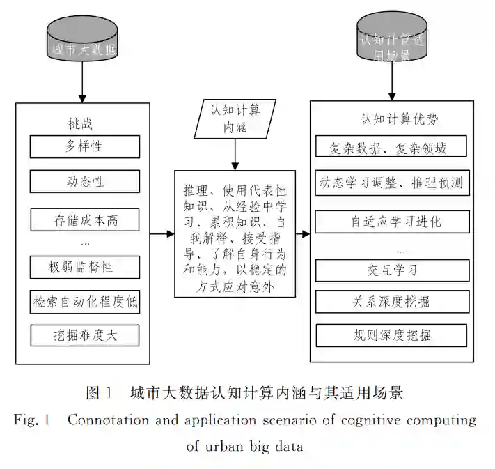 城市大数据为城市运行状态估计与综合决策提供理论与行动支撑,而其多源异构、耦合度低及动态变化等特点给传统的集成分析带来极大挑战。认知计算适用于时变多维、复杂多样数据的分析与挖掘,并可对问题进行自适应学习与进化,是解决城市大数据问题的重要途径。文中以城市大数据为背景,根据城市大数据的不同类型结构等特点,针对性地按照认知流程的4个环节对相应处理方法进行归纳,并进一步从知识驱动、数据驱动以及知识与数据协同驱动的角度,对上述具体方法进行概念级分类。最终形成城市大数据认知流程中不同驱动方式的方法间有机协同,从感知理解到决策行为的城市大数据认知闭环。同时从应用领域多角度综述了城市大数据认知计算的研究与发展现状。最后讨论了认知计算在城市大数据建设领域面临的挑战,并对未来发展趋势和研究方向进行了思考和展望。