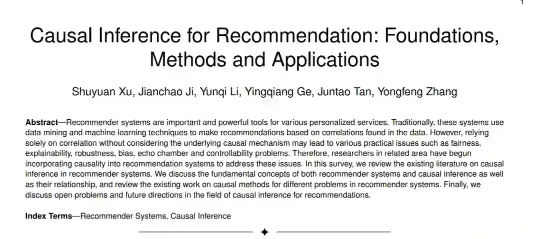 推荐系统是提供各种个性化服务的重要而强大的工具。传统上,这些系统使用数据挖掘和机器学习技术,根据数据中的相关性进行推荐。然而,仅依赖相关性而不考虑潜在的因果机制可能会导致公平性、可解释性、鲁棒性、偏差、回声室和可控性等诸多实际问题。**因此,相关领域的研究人员已经开始将因果关系融入推荐系统来解决这些问题。本文回顾了推荐系统中因果推理的现有文献。**讨论了推荐系统和因果推理的基本概念及其相互关系,综述了针对推荐系统中不同问题的因果方法的现有工作。最后,讨论了推荐因果推理领域存在的问题和未来的发展方向。 https://www.zhuanzhi.ai/paper/89fc6bd003d6e90ddf7e792d390e6ee3