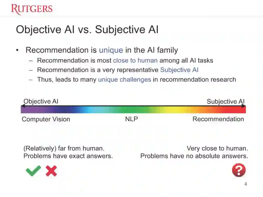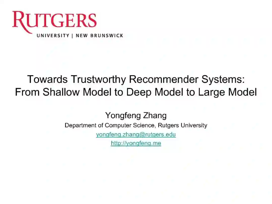 推荐系统作为人类与人工智能之间的桥梁,处于以人为本的人工智能研究的前沿。然而,不恰当的使用或开发推荐技术可能会给人类和整个社会带来负面影响,比如推荐机制的不透明导致的用户不信任、推荐算法的不公平、推荐系统的用户不可控性,以及大量使用用户隐私数据进行个性化带来的用户隐私风险。在本次演讲中,我们将沿着推荐算法从浅模型到深模型再到大模型的演进过程,讨论如何构建可信的推荐系统,包括但不限于推荐系统研究在AI社区中作为代表性的主观AI任务的独特作用,主观AI与可信计算的关系,以及可信计算不同视角下的典型推荐方法,例如因果和反事实推理、神经符号建模、自然语言解释、联邦学习、用户可控推荐、回音室缓解、个性化快速学习等等。