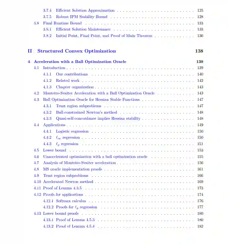 第一部分给出了求解拉普拉斯线性系统的最先进算法,以及求解最小成本流的更快算法。我们的结果是通过新颖的组合经典迭代方法,从凸优化与基于图的数据结构和预调节器。第二部分给出了若干类结构凸优化问题的新算法。给出了凸函数极小化的近似最优方法,包括球优化oracle和N个凸函数的最大值极小化,以及投影极小化和复合凸极小化的新算法。我们的结果是通过对经典加速梯度方法的更精细的理解实现的,并为各种重要的机器学习任务,如逻辑回归和硬边界支持向量机提供了新的算法。第三部分讨论了离散最优传输问题算法的进展,这是一个近年来由于深度学习的新应用而引起极大兴趣的任务。我们给出了简单的并行算法来逼近离散最优传输,并进一步证明了这些算法可以在空间界和流设置中实现。通过进一步利用我们的机制,我们还对半流模型中的图优化问题(如二部匹配和转运)给出了改进的复杂度边界。
