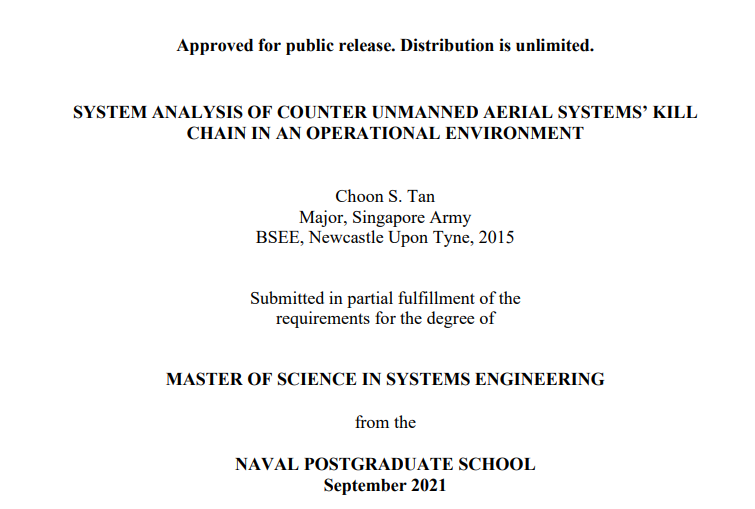 现有研究主要关注 CUAS 和 UAS 系统的技术能力,而没有从更广泛的系统工程角度进行研究。本论文的研究采用了系统工程视角,以支持设施指挥官了解设施在应对当前和新出现的无人机系统威胁时可能存在的薄弱环节,并平衡 CUAS 的能力与邻近利益相关者的需求[9]。第 2 章中提出的方法允许设施指挥官通过评估和分析探索可能的 CUAS 空间,以确保 CUAS 针对快速出现的无人机系统威胁进行优化并具有相关性。