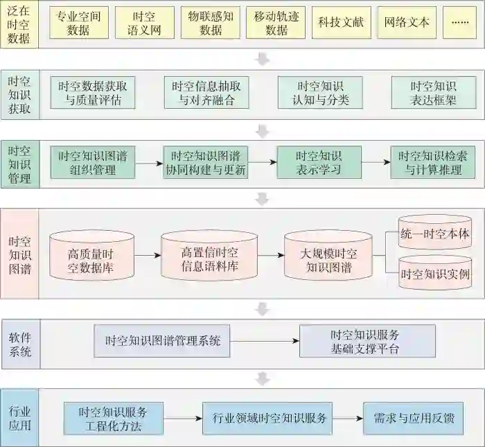 如何建立符合时空知识特点的时空认知与知识图谱表达方法,形成多维度的时空知识分类体系和统一的时空本体,发展顾及复杂时空特征及关系的时空知识图谱自适应表达模型,是时空知识组织管理、更新与计算推理、时空知识表示学习的理论基础。