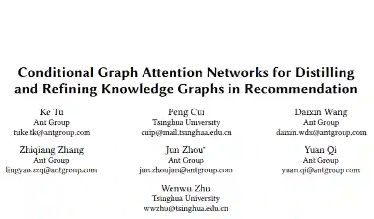 作者提出用知识图谱来帮助提升推荐系统的效果。知识图谱中不仅包含节点的特征,还包含节点的连接关系。和传统网络不同,知识图谱由一系列三元组组成,也就是<起始实体,关系,终止实体>。它不但可以描述节点属性 ,也可以描述节点之间的关系。如今,有非常多的超大规模的知识图谱被发布,比如Wordnet,Freebase,DBpedia。这些图谱描述了事实和常识,它们通常可以和大多数网络应用中的部分节点对齐并作为网络应用的外部知识。它们通过引入实体之间的联系,增强实体的信息以及产生可解释性来帮助推荐系统。然而,由于知识图谱的一般性和巨大的规模,大多数知识实际上对于目标用户商品的预测是没有帮助的。如何有效地对知识图谱进行蒸馏以便维持目标相关的知识关系是将知识图谱引入推荐系统的关键问题。