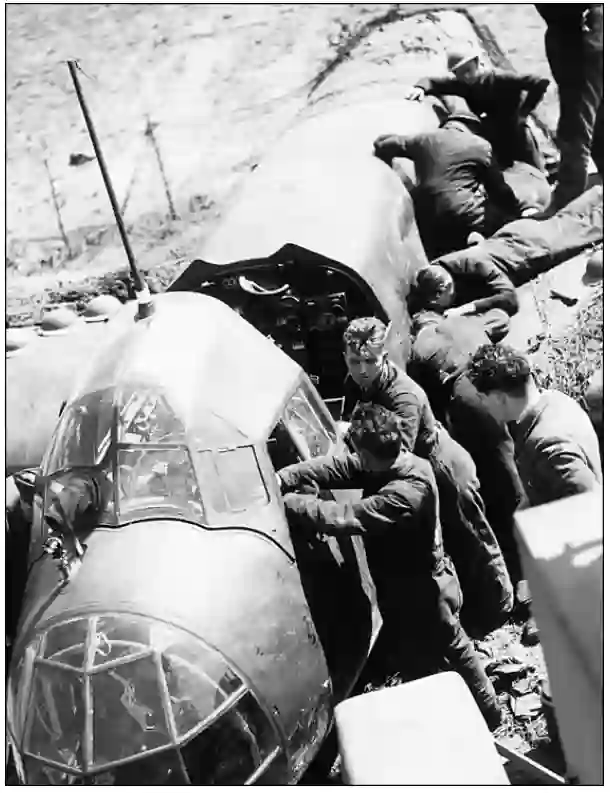 图:1940 年 7 月,英国皇家空军回收小组检查在不列颠之战中被击落的德国空军容克斯 Ju 88 飞机的机身。