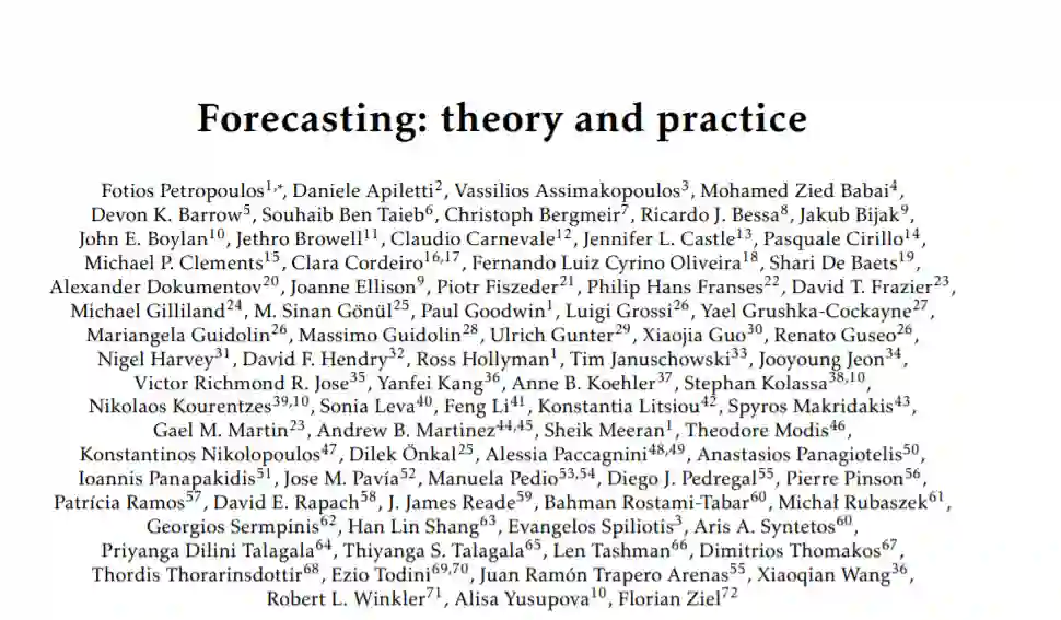 预测一直处于决策和规划的最前沿。围绕着未来的不确定性既令人兴奋,又具有挑战性,个人和组织都在寻求风险最小化和公用利益最大化。大量的预测应用需要一系列不同的预测方法来应对现实生活中的挑战。这篇文章提供了一个非系统的回顾理论和预测的实践。我们提供了一个广泛的理论、最先进的模型、方法、原则来准备,产生、组织和评估预测。然后,我们展示了这些理论概念是如何应用于各种现实生活的背景。