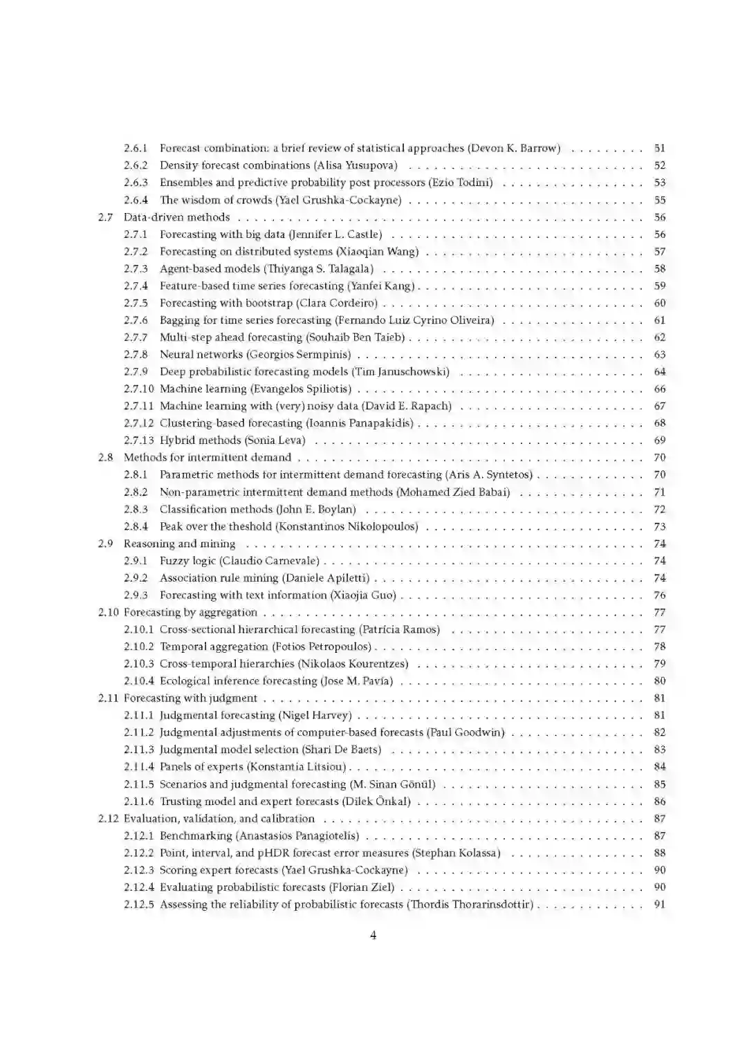 自从早期人类通过观察天空来判断天气是否适合狩猎以来,天气预报已经取得了长足的进步,甚至自从猎人能够得到诸如“气温高达40度,有可能下雨”这样的预报以来。现在,猎人只要看一看智能手机,就能立即得到多个地点每小时的气温预报和降雨概率,以及显示未来几个小时天气预报模式的地图视频。管理人员、政府官员、投资者和其他决策者可以对日益复杂的情况作出定制的预测,为许多不同类型的重要决策提供信息。自De Gooijer和Hyndman(2006)发表优秀的综述文章以来的15年里,预测领域在理论和实践方面都取得了惊人的增长。因此,这篇综述既及时又广泛,既有高度理论性又非常实用。