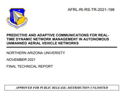 在本项目中,我们从多个方面研究了无人机自组织网络的通信和安全挑战:i) 我们为特设无人机网络开发了一种新的路由协议,以处理此类网络的高度动态性。我们的研究表明,所提出的路由算法在流量成功率、吞吐量和流量完成时间方面都优于所有知名基准;ii) 我们研究了自组织无人机网络的安全挑战,并表明现有的基于预分配的密钥管理协议容易受到合作攻击。我们设计了一种基于区块链的密钥交换算法,以提高网络抵御此类攻击的能力。