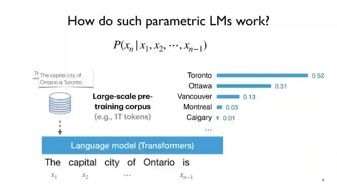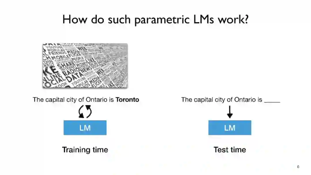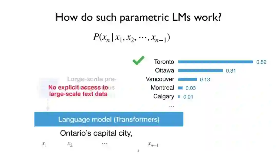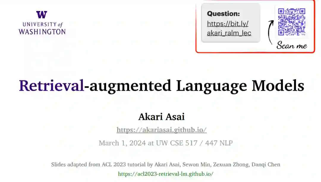 语言模型(LMs),如GPT-3和PaLM,在自然语言处理(NLP)任务中展现了令人印象深刻的能力。然而,仅依赖它们的参数来编码大量世界知识需要非常多的参数,因此需要大量计算,而且它们通常难以学习长尾知识。此外,这些参数化的LMs从根本上无法随时间适应,经常产生幻觉,并可能从训练语料库中泄露私人数据。为了克服这些限制,对基于检索的LMs有着越来越多的兴趣,这类LMs结合了非参数化数据存储(例如,来自外部语料库的文本块)和它们的参数化对应物。基于检索的LMs可以以远少于无检索LMs的参数数量大幅度超越它们的性能,可以通过替换其检索语料库来更新它们的知识,并为用户提供引用,以便于轻松验证和评估预测。 在这个教程中,我们旨在提供一个关于基于检索的LMs最近进展的全面而连贯的概览。我们将首先提供涵盖LMs和检索系统基础的初步内容。然后,我们将专注于基于检索的LMs的最新架构、学习方法和应用进展。