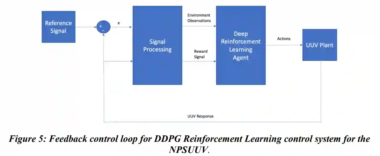 与UUV的传统PID控制器相比,基于DDPG算法的深度强化学习控制器有两个主要好处。第一个好处是,DDPG算法是无模型的。它不需要任何关于车辆或环境动态的知识来提供最佳控制。因此,它避免了有效解决复杂的车辆或环境动态系统模型所需的简化假设的弊端。其次,基于深度强化学习的控制系统可以被自主地调整(训练)。与PID控制系统相比,这将减少调整基于深度强化学习的控制系统所需的资源。