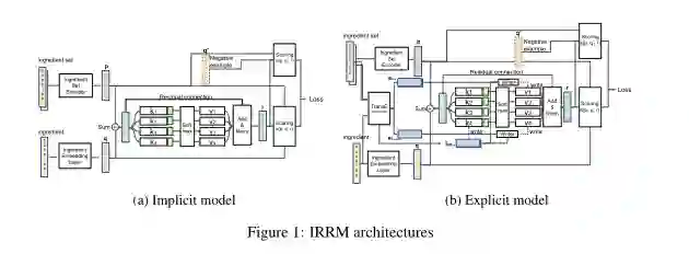 摘要:食物配料推荐系统支持厨师创造新的食谱是具有挑战性的,因为好的配料组合取决于许多因素,如味道、气味、烹饪风格、质地等。使用机器学习来解决这些问题的尝试很少。重要的是,有用的模型不仅需要准确,更重要的是-特别是对于食品专业人士-是可解释的。为了解决这些问题,我们提出了可解释关系表示模型(Interpretable Relational Representation Model, IRRM)。该模型的主要组成部分是一个键-值记忆网络,用于表示成分之间的关系。我们提出并测试了该模型的两个变体。一个可以通过可训练的记忆网络(隐式模型)学习潜在的关系表示,而另一个可以通过集成外部知识库(显式模型)的预训练的记忆网络学习可解释的关系表示。模型产生的关系表示是可解释的-它们允许核对为什么建议某些配料配对。显式模型还允许集成任何数量的手动指定的约束。我们在分别有45,772个食谱的CulinaryDB和55,001个食谱的Flavorne这两个食谱数据集上进行了实验。实验结果表明,我们的模型具有预测性和信息性。