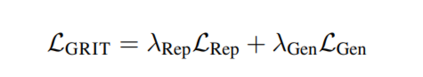 其中f是由模型θ和语言建模头η参数化的GRITLM,其中η仅用于生成。x是生成训练样本。我们仅在预测的令牌上计算损失,即图3中的“{response}”。一个关键考虑是生成损失是在样本还是令牌级别聚合。在样本级别聚合相当于在一个批次内给每个样本相同的权重,不管它的令牌计数如何。这种聚合通常用于指令调整,因为它可以提升在判别任务上的性能[108]。然而,Muennighoff等人[108]也展示了这如何反过来导致模型偏向于短生成。同时,在令牌级别聚合相当于给每个令牌相同的权重,因此拥有许多令牌的样本变得更重要。这通常导致模型产生更长的生成,这对于生成任务的性能可能很重要。特别是,人类或机器评估的生成任务,如AlpacaEval[89],已知偏好更长的生成[162]。注意,当每个样本有相同的序列长度,如在预训练期间或当批量大小为1时,令牌和样本级生成损失彼此相等。也可以混合两者来平衡它们的权衡,例如在批次的一个子集上进行令牌级损失,然后给每个子集相同的权重。我们在§3.3的消融研究中探索了这些权衡。我们用可选的损失权重λRep和λGen将目标求和:
