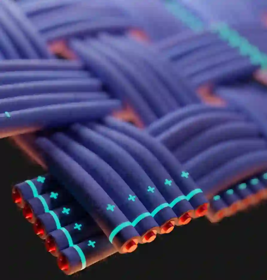 7.实现高性能纤维锂离子电池规模化制备 如何通过设计新结构(如创建纤维锂离子电池)满足电子产品高度集成化和柔性化发展要求,是锂离子电池领域面临的重大挑战。复旦大学彭慧胜、陈培宁等发现纤维锂离子电池内阻与长度之间独特的双曲余切函数关系,即内阻随长度增加并不增大,反而先下降后趋于稳定。在此理论指导下构建的纤维锂离子电池具有优异且稳定的电化学性能,能量密度较过去提升了近2个数量级,弯折10万次后容量保持率超过80%;建立的世界上首条纤维锂离子电池生产线,实现了其规模化连续制备;编织集成得到的纤维锂离子电池系统,电化学性能与商业锂离子电池相当,而稳定性和安全性更加优异。