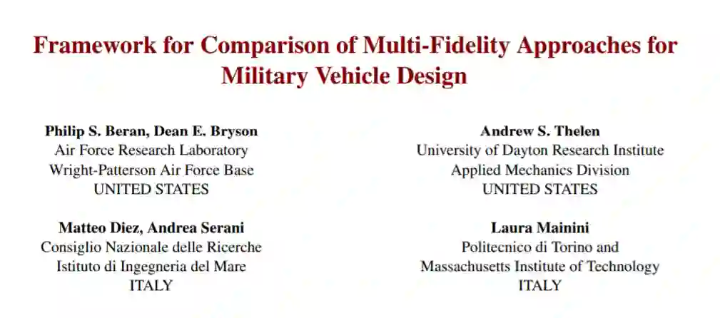 本文概述了北约应用车辆技术小组下的AVT-331技术小组的工作,该小组正在研究通过应用于车辆设计的多重保真方法。该小组的目标是了解多重保真方法在车辆设计中的潜在好处,并使用该小组开发的通用基准套件记录不同的多重保真方法的相对优势和劣势。该基准套件有多个层次的复杂性,从具有公认属性的分析函数开始,最后是具有代表性的空中和海上车辆基准。该套件还包括与空中、海上和空间飞行器相关的中等复杂度的基准。基准的特点在这里被编入目录,包括对基准目标的描述和再现车辆级结果所需的启用软件,以及分析基准的实验设置。总结了整个团队所使用的主要多德尔方法,并对AVT-331所发表的大量论文进行了列表。该表格记录了所采用的方法和所研究的问题之间的映射关系。最后,描述了在8个评估类别中评估不同的多重保真方法的相对优势和劣势的过程。本文不包括多重保真方法的结果,但在四份研讨会文件中单独详细说明。