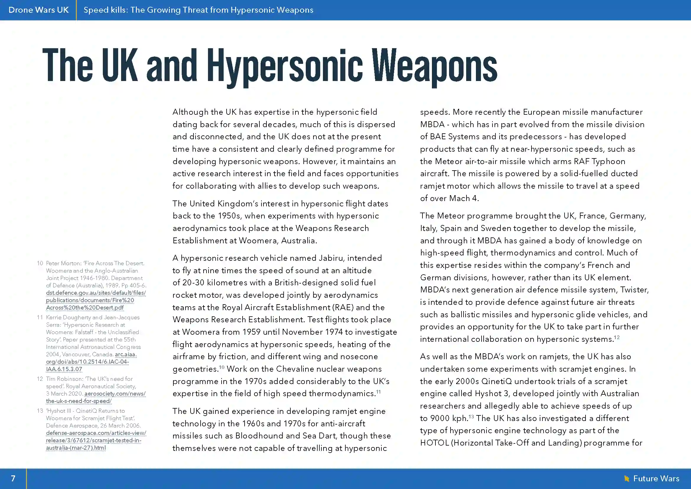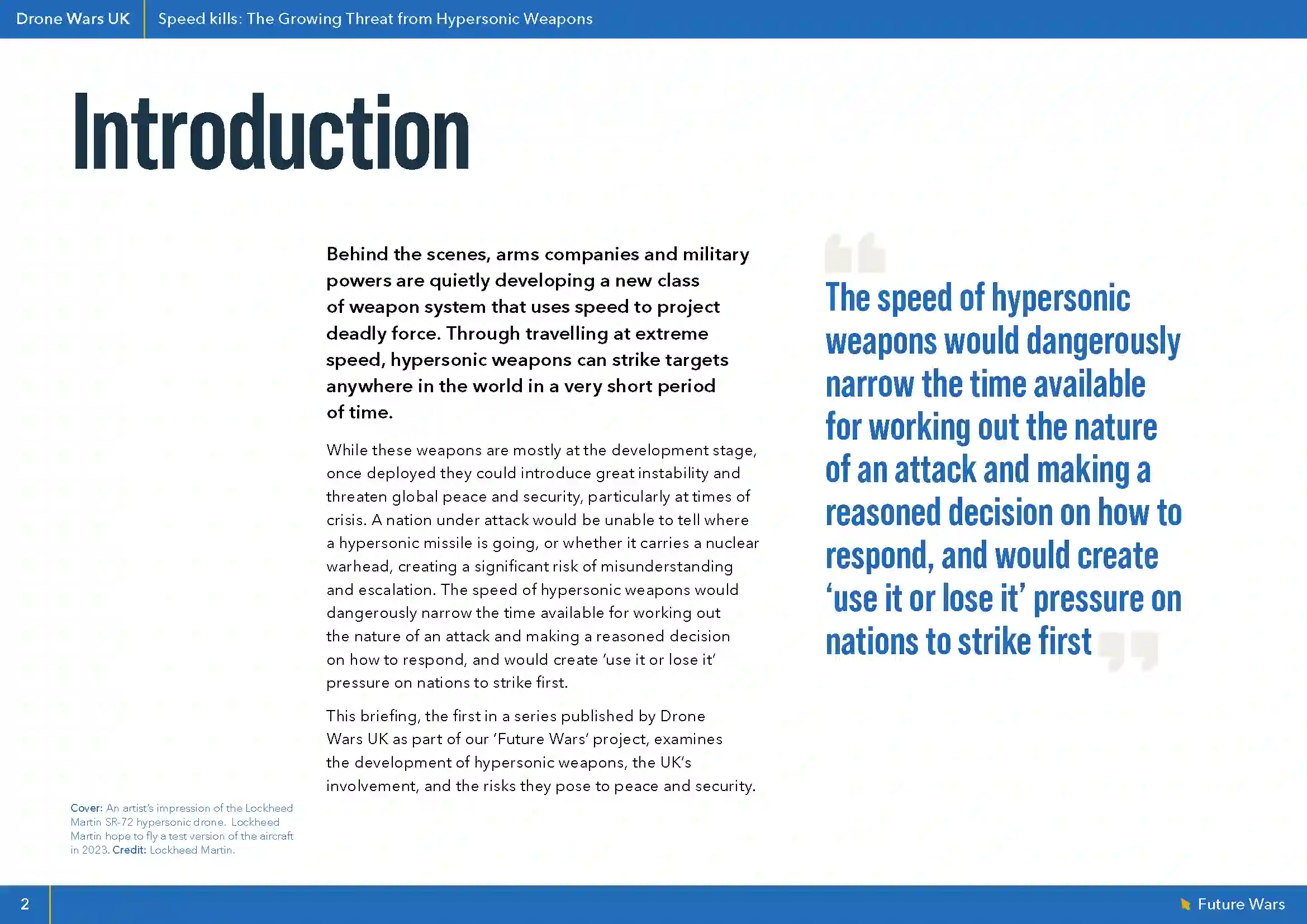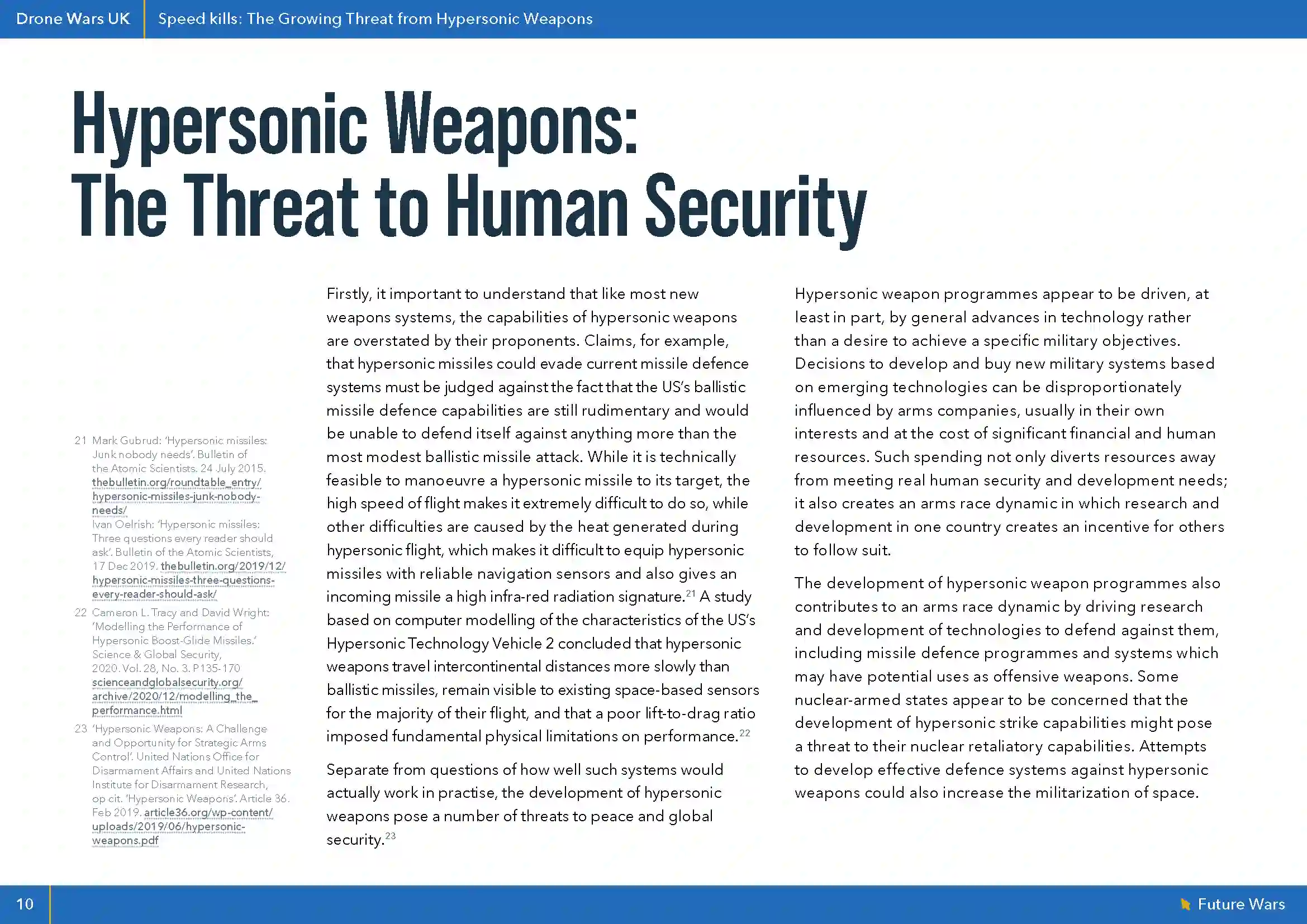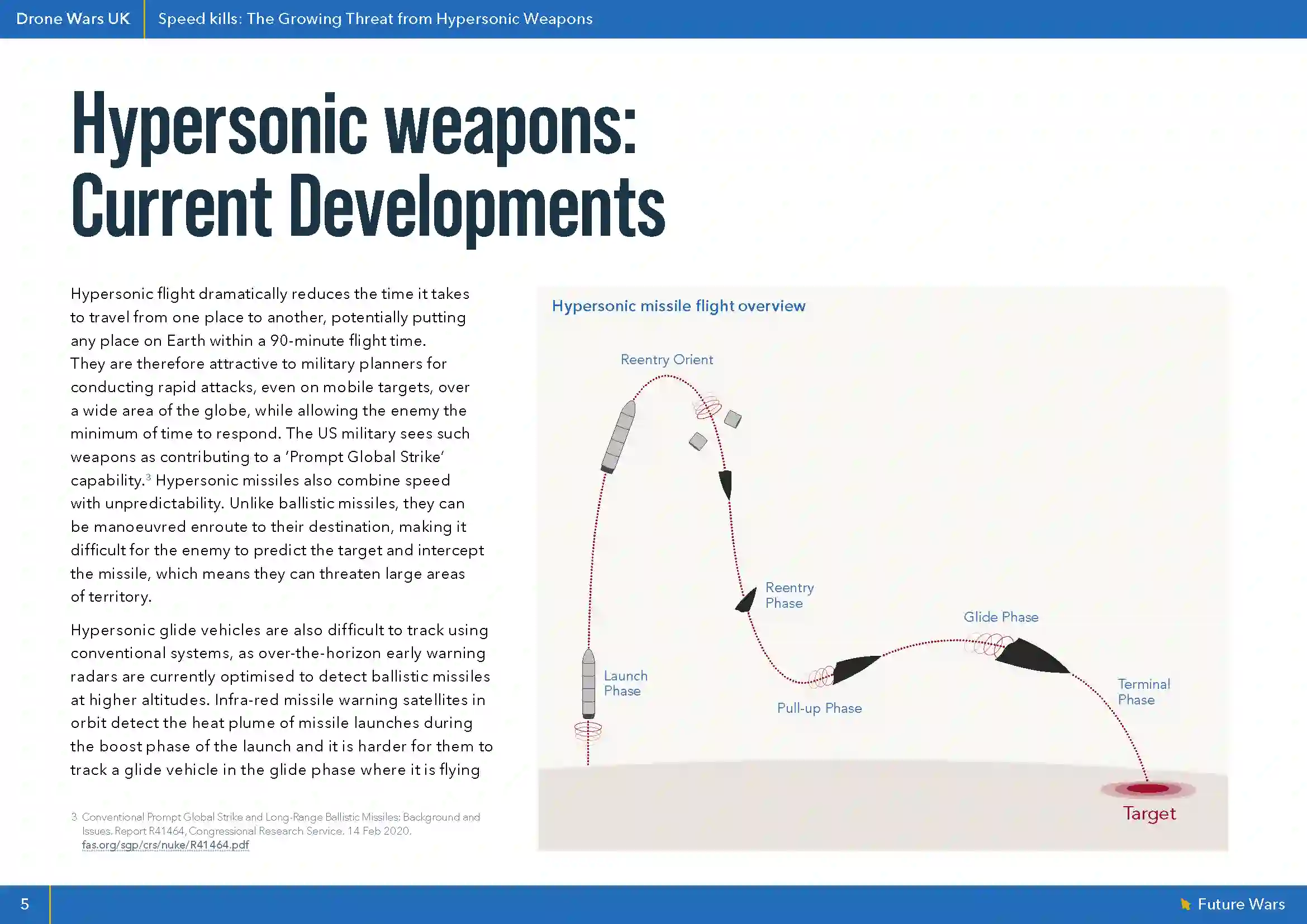 本简报来自Drone Wars UK ,探讨了高超音速武器的发展、英国参与情况以及它们对和平与安全构成的风险。