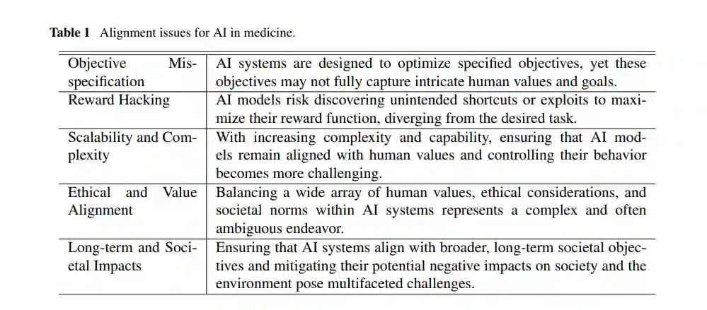 除了执行任务的可靠性外,确保AI模型的行为符合人类用户的目标和价值观也至关重要。我们讨论AI在医学中的一致性挑战,重点关注技术和规范性一致性以及AI与临床医生的互动。2.2.1 医学实践中的一致性挑战AI一致性问题涉及确保AI系统的行为与人类的价值观、意图和期望相一致。技术挑战包括“奖励黑客”等问题,而规范性挑战则涉及应当编码哪些人类价值观。2.2.2 AI与临床医生的互动与一致性AI与临床医生的互动和一致性是将AI解决方案应用于医学实践的基本方面。通过共识或分歧交叉验证实现的AI与临床医生的协作,将显著提高患者护理质量并降低临床运营成本。