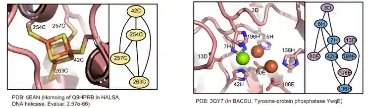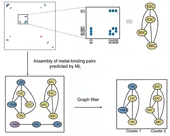 鉴于金属结合位点通常有多个残基与金属离子配位,作者将机器学习模型预测的残基对组装成残基网络,通过基于图模型的过滤器得到一个相对完整的网络簇,大大提高了对金属结合位点预测结果的可信度,将预测方法的平均F1值提升至0.72。当预测得到的网络簇的拓扑结构足够完整时,还可以通过与已知金属结合蛋白所包含的共进化残基网络进行比对检索,从而推断出该位点可能结合的金属离子类型。