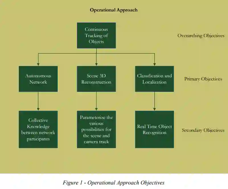 过去几十年来,在安全、监视、情报收集和侦察等许多领域,对目标跟踪(OT)应用的需求一直在增加。最近,对无人系统新定义的要求提高了人们对 OT 的兴趣。机器学习、数据分析和深度学习的进步为识别和跟踪感兴趣的目标提供了便利;然而,持续跟踪目前是许多研究项目感兴趣的问题。本论文提出了一个系统,实现了一种持续跟踪目标并根据其先前路径预测其轨迹的方法,即使该目标在一段时间内被部分或完全隐藏。该系统分为两个阶段: 第一阶段利用单个固定摄像机系统,第二阶段由多个固定摄像机组成的网状系统。第一阶段系统由六个主要子系统组成:图像处理、检测算法、图像减法器、图像跟踪、跟踪预测器和反馈分析器。系统的第二阶段增加了两个主要子系统:协调管理器和相机控制器管理器。这些系统结合在一起,可以在目标隐藏的情况下实现合理的目标跟踪连续性。