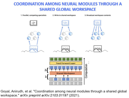 其实已经有一些工作,比如把 global workspace 变成可计算。结果发现在这些情况下,我们能够做一些跟现有深度学习不一样的东西。所以这里做了一些尝试,一些方向上的东西。