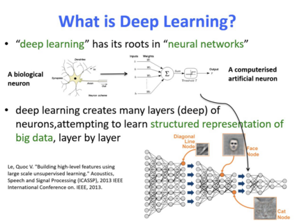 如何去做呢?当然我们都知道是用深度学习,它是根植于生物或对大脑的研究,比如神经元,让它计算机化出不是蛋白质或者生物系统,而是在硅的系统下做成计算机形式的神经元。通过多层的形式能够达到并学习更复杂的表征,然后解决各种各样的机器学习任务。