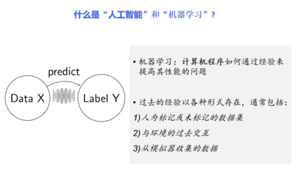 大家都知道,人工智能和机器学习不可分割。所谓人工智能,就是能不能让机器像人一样,有人的智慧,甚至未来比人的智慧更加强大。现在一个核心的方法或者关注的问题就是机器学习,即如何让计算机程序通过过去的经验(包括人为标记或未标记的数据、与环境的过去交互或从模拟器收集的数据)来提升性能。