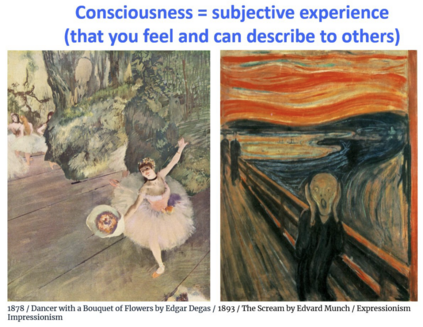 那么意识到底是什么?当然它有各种各样的定义,也没有一个非常严谨和直接的定义。但是大部分人接受的一种定义是,意识就是主观感受。我们又如何判断它是主观感受呢?作为一个人,如果你可以感觉到并主要通过语言等方式描述给其他人,就认为它是一个主观感受。