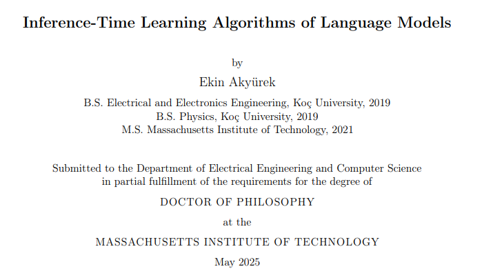 现代语言模型能够通过上下文学习执行复杂任务——它们无需参数更新即可根据输入中提供的示例自适应学习新任务。然而关于这种自适应机制何时生效、其底层算法原理及优化方法仍存在基础性科学问题。本论文系统研究上下文学习的机制与局限,并开发改进语言模型在语言建模与推理多基准测试上测试时自适应性能的新方法。首先评估预训练语言模型的上下文学习能力,证明模型在获得少量示例后可实现强组合泛化能力;另项分析表明当任务出现反事实变体时,其性能会出现显著退化。基于此构建上下文学习的"模型问题"测试框架,验证语言模型学习线性函数与概率形式语言等新型数学结构的上下文学习能力。在算法原理阐释方面,证明具备足够容量的Transformer模型可执行线性回归问题的迭代解与封闭形式解,并揭示这些理论解以可解释中间变量形式显现;同时发现语言模型通过专用计算电路实现概率语言的近似n元语法学习算法。基于这些洞察,开发两种增强方法:首先证实将显式n元语法计算融入模型架构可提升多领域性能;其次提出测试时训练方法,通过对输入数据执行梯度更新实现快速自适应,在抽象推理任务上显著超越标准少样本学习效果。这些成果共同推进了对语言模型适应新任务机制的理解,并为增强其测试时学习能力提供实用技术。