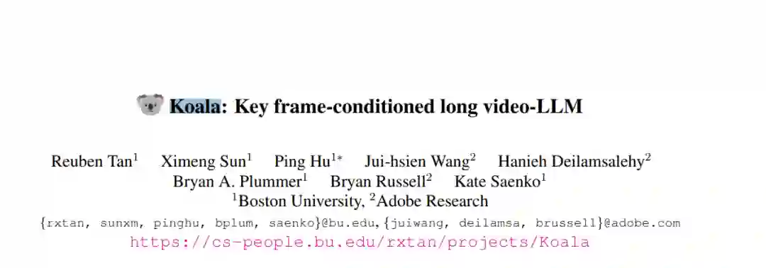 长视频问答是一项具有挑战性的任务,涉及识别短期活动并推理其细粒度关系。最先进的视频大语言模型(vLLMs)因展现出对新任务的突现能力而被认为是可行的解决方案。然而,尽管在数百万个短视频(视频长度仅几秒)上进行了训练,vLLMs 仍无法理解长达数分钟的视频并准确回答有关这些视频的问题。为了解决这一限制,我们提出了一种轻量级且自监督的方法——关键帧条件化长视频语言模型(Koala),引入了可学习的时空查询以适应预训练的 vLLMs,以便泛化到更长的视频。我们的方法引入了两种新的分词器,这些分词器依赖于从稀疏视频关键帧计算得到的视觉令牌,以理解短视频和长视频瞬间。我们在HowTo100M上训练我们的提议方法,并在零样本长视频理解基准测试中展示了其有效性,在所有任务中绝对准确率比最先进的大模型提高了 3 - 6%。令人惊讶的是,我们还实证显示我们的方法不仅有助于预训练的 vLLM 理解长视频,还提高了其在短期动作识别上的准确性。