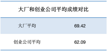从大厂和创业公司的平均成绩来看,大厂研发的大模型平均成绩为69.42分,创业公司研发的大模型平均成绩为62.09分,差值约6.33分,较11月份差距在略有增大。这说明大厂在大模型竞争中长期资源投入方面有一定优势。