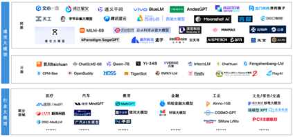 截止目前为止,国内已发布开源、闭源通用大模型及行业大模型已有上百个,SuperCLUE梳理了2023年值得关注的大模型全景图。