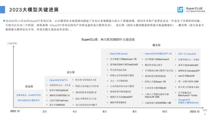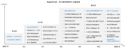 来源:SuperCLUE 自2023年以来,AI大模型在全球范围内掀起了有史以来规模最大的人工智能浪潮。国内学术和产业界在过去一年也有了实质性的突破。中文大模型测评基准SuperCLUE在过去一年对国内外大模型的发展趋势和综合效果进行了实时跟踪。 基于此,我们发布了《中文大模型基准测评2023年度报告》,在AI大模型发展的巨大浪潮中,通过多维度综合性测评,对国内外大模型发展现状进行观察与思考。 国内大模型关键进展