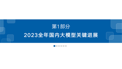 1. 2023年大模型关键进展与中文大模型全景图 国内学术和产业界在过去一年也有了实质性的突破。大致可以分为三个阶段,即准备期(ChatGPT发布后国内产学研迅速形成大模型共识)、成长期(国内大模型数量和质量开始逐渐增长)、爆发期(各行各业开源闭源大模型层出不穷,形成百模大战的竞争态势)。
