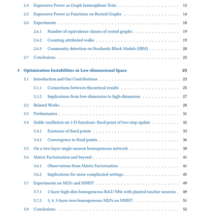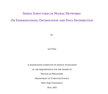 在这个大型语言模型(LLMs)及其他巨型神经网络迅猛发展的时代,我们旨在从零出发,分析简化情境,作为理解这些大型模型功能机制的基础性步骤。我们从三个方面展开探讨。 在表达能力方面,我们研究了一类简化的图网络——图增强多层感知机(Graph-Augmented Multi-layer Perceptrons, GA-MLPs)的函数类,并与经典图神经网络(Graph Neural Networks, GNNs)进行了对比。我们采用图同构测试和带属性路径计数等方式来衡量它们的表示能力。 在优化性方面,我们从理论角度分析了神经网络训练中由于大学习率引发的不稳定性现象,即“稳定性边缘”(Edge of Stability)。我们研究了损失函数在训练过程中为何会呈现出不稳定轨迹的条件,尤其是其在低维子空间中产生振荡的情况。随后,我们将这一特性应用于一些简单但具有代表性的学习问题中,如教师-学生框架下的两层单神经元同构网络和矩阵分解问题。 在推理任务中的数据分布方面,我们提出将下一个 token 的预测分解为两个部分:上下文内推理(in-context reasoning)与分布关联(distributional association)。我们在一个可控的合成实验设置中,从实证与理论两个角度对这一分解方法进行了研究,发现前馈层(feed-forward layers)更倾向于学习如二元语法(bigram)等简单的分布关联,而注意力层则主要负责上下文内的推理。最后,基于这些理解,我们进一步提供了实验证据,说明对前馈层进行修改可以提升 LLM 在某些任务上的表现。
