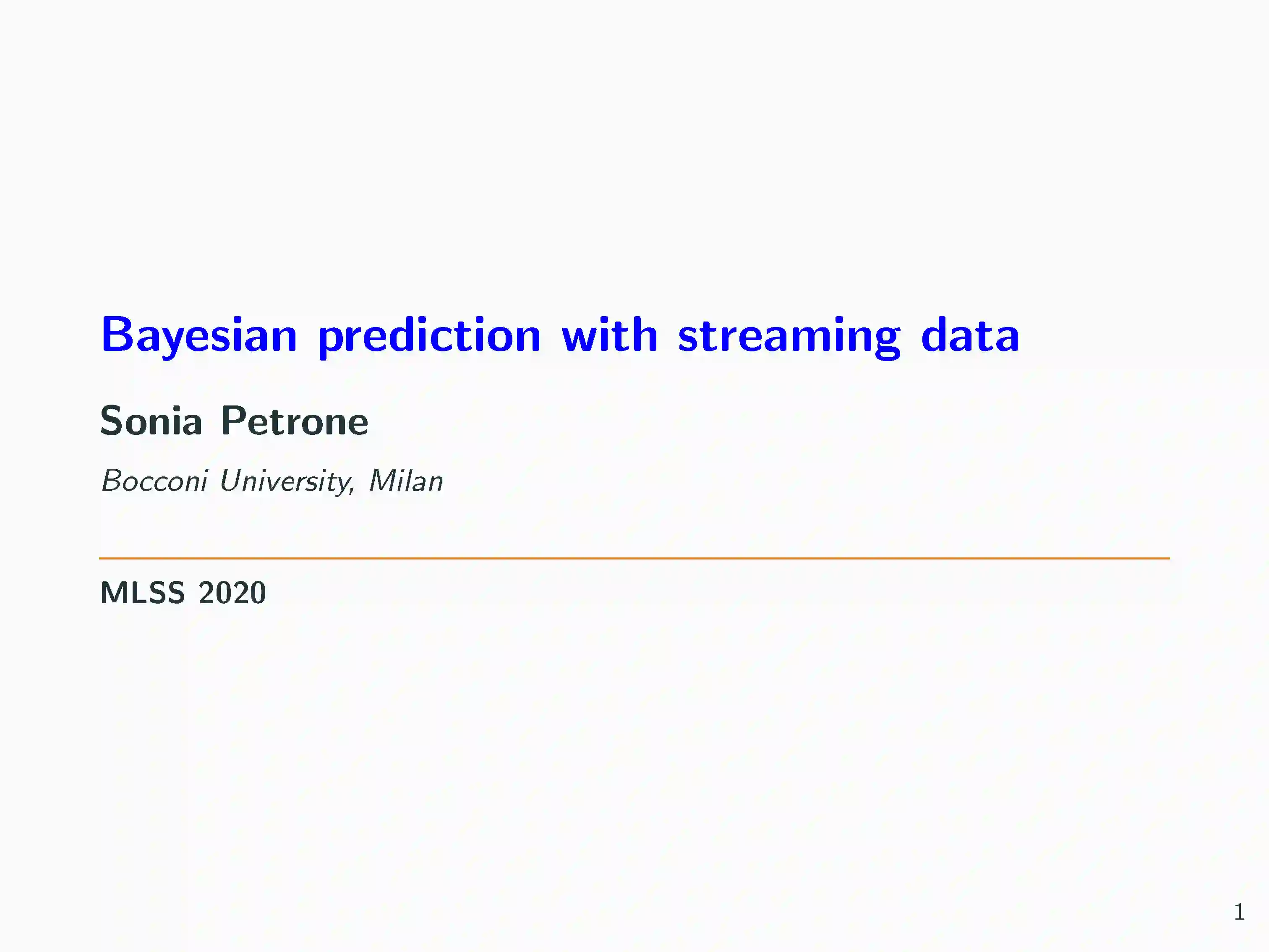 机器学习暑期学校(MLSS)系列开始于2002年,致力于传播统计机器学习和推理的现代方法。今年因新冠疫情在线举行,从6月28号到7月10号讲述了众多机器学习主题。本文推荐来自米兰Sonia Petrone教授讲述《流数据贝叶斯预测》,177页ppt系统性讲述了贝叶斯预测,非常干货。