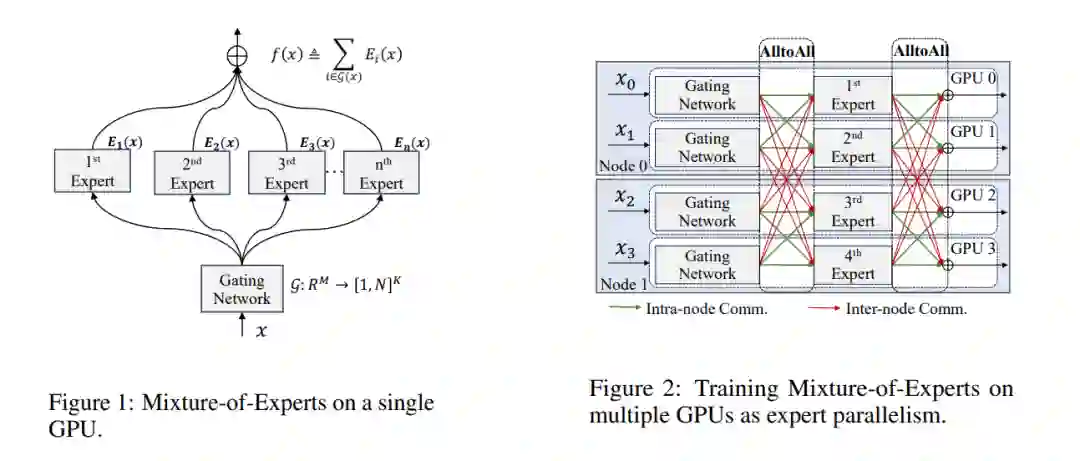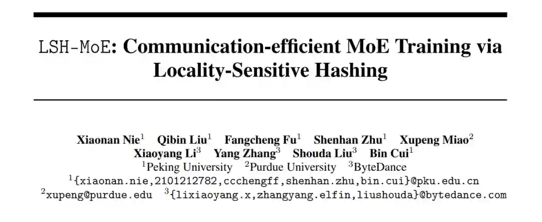 更大的 Transformer 模型在各种任务上总是表现更好,但扩展模型规模需要更高的成本。为了高效地扩展模型,广泛采用了专家混合(MoE)架构,该架构由一个门控网络和一系列专家组成,通过将输入数据路由到固定数量的专家而非全部专家,从而保持训练成本不变。在现有的大规模 MoE 训练系统中,专家会分布在不同的 GPU 上进行并行化,因此输入数据需要额外的全对全(all-to-all)通信来访问目标专家并执行相应的计算。然而,通过对常用 GPU 集群上三种主流 MoE 模型的训练过程进行评估,我们发现全对全通信的比例平均约为 45%,这显著阻碍了 MoE 模型训练的效率和可扩展性。在本文中,我们提出了一种使用局部敏感哈希(LSH)的通信高效的 MoE 训练框架——LSH-MoE。我们首先介绍了现有系统中扩展 MoE 训练所面临的问题,并强调利用令牌相似性来实现数据压缩的潜力。随后,我们引入了一种基于 LSH 的高效压缩技术,该技术使用交叉多面体哈希(cross-polytope hashing)进行快速聚类,并实施了基于残差的误差补偿方案,以减轻压缩的负面影响。为了验证我们方法的有效性,我们在语言模型(如 RoBERTa、GPT 和 T5)以及视觉模型(如 Swin)上进行了预训练和微调任务的实验。结果表明,我们的方法在不同任务上的速度提升达到了 1.28× - 2.2×,显著优于其他方法。
