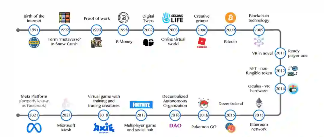 图2 1991年至2021年主要事件的元宇宙发展时间表