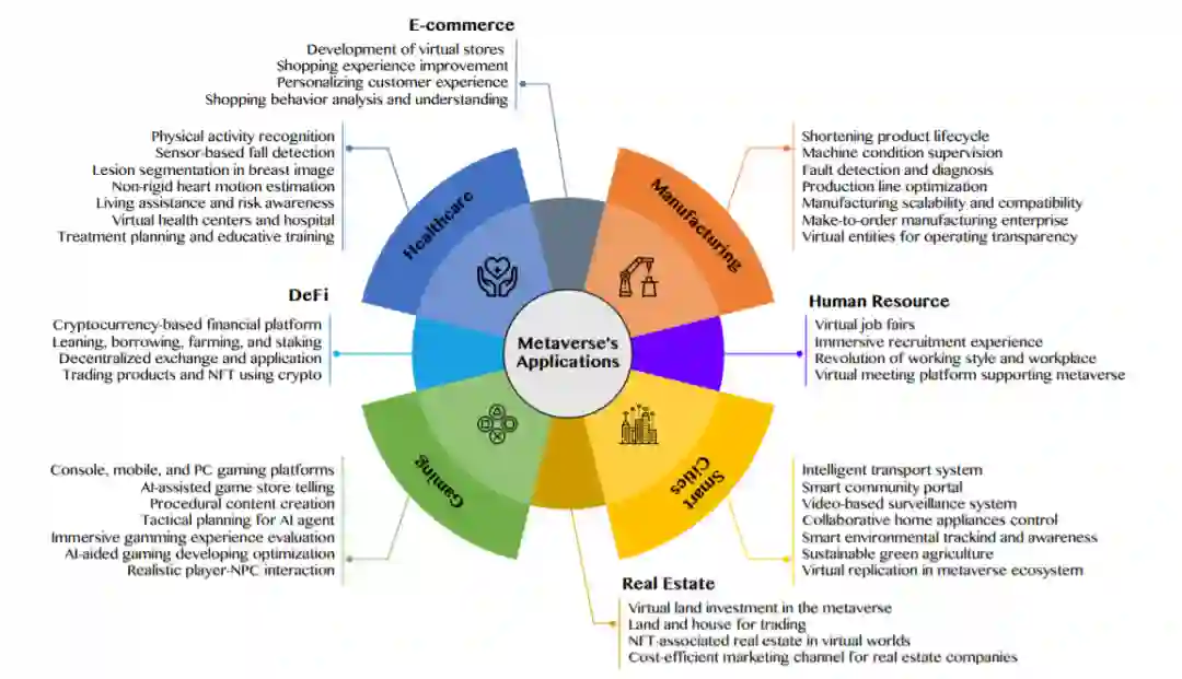 我们研究现有的AI辅助方法,这些方法依赖于几个应用方面,如医疗保健、游戏、制造、智慧城市、电子商务、房地产和去中心化金融,这些方法在虚拟世界中更受关注。