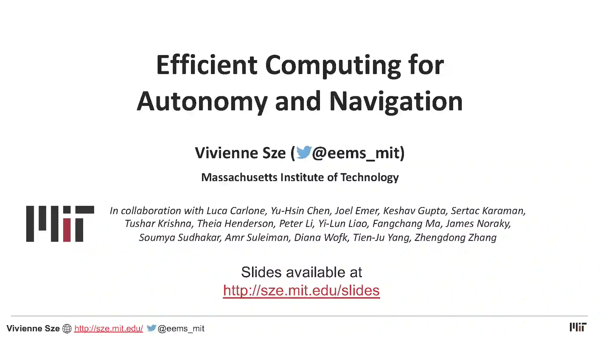 Vivienne Sze (http://sze.mit.edu/) 是麻省理工学院电气工程和计算机科学系的副教授,负责电子学节能多媒体系统研究小组的研究实验室。她的团队致力于计算系统,这些系统能够为包括自主导航、数字健康和物联网在内的广泛应用提供节能机器学习、计算机视觉和视频压缩/处理。作为视频编码联合协作团队的成员,她因开发高效视频编码视频压缩标准而获得黄金时段工程艾美奖。她是《深度神经网络的高效处理》一书的合著者。