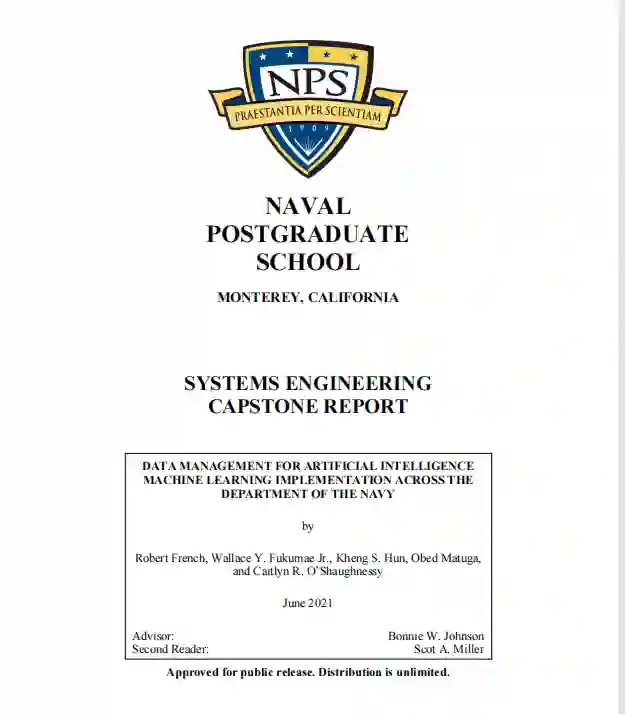 私营部门不断收集和整理关键数据及其来源,以通过利用数据密集型的人工智能机器学习(AI/ML)技术来确保支持和发展新的业务。大部分行业数据都是有价值的共享资源,而海军到目前为止还没有实现这种做法。本顶点研究通过研究、访谈和个人专业知识,探讨了海军在创造数据可用性和质量方面的挑战性任务。研究侧重于过程、技术和管理,采用了详细需求评估、利益相关者分析、功能设计。其研究结果是一个集中式人工智能库(CAIL)的概念框架,旨在匹配行业对数据作为关键商品的坚定关注。美国海军需要持久和动态的数字化准备,因此这个拥有70多年美国海军数据专业知识的顶点团队建议 OVERMATCH 考虑这些发现并生成一个确保海军数据可用性和质量的系统。