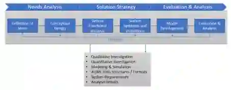 时区团队采用了系统工程的方法来进行这个项目。图4说明了该团队的过程。团队从需求分析开始,以了解问题并为DON AI/ML开发者定义数据要求。在这个阶段,团队确定了三个DON任务领域作为AI/ML应用的代表性领域。接下来,团队在功能分析和系统综合的基础上,制定了一个名为中央人工智能库(CAIL)系统的解决方案战略的概念设计。该小组对CAIL系统进行了建模,并利用DON的三个任务领域来分析实施CAIL系统的效用和潜在的成本/进度效益。该团队的分析过程涉及几种分析方法,包括定性调查、定量调查、建模和模拟、数据结构和格式分析、需求分析和操作概念评估。