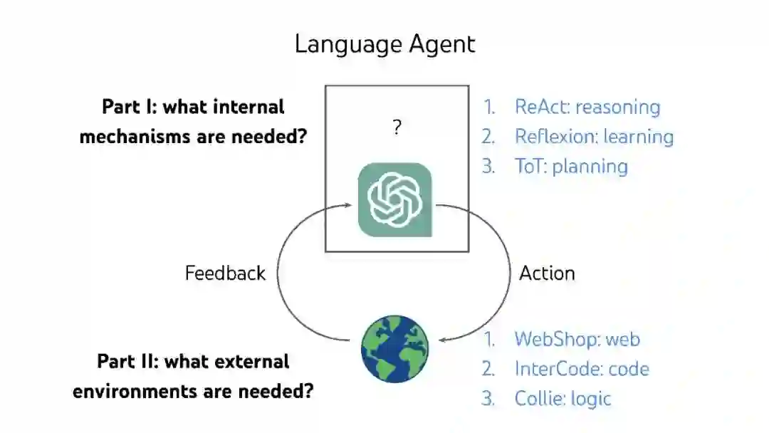 大型语言模型(LLM)彻底改变了自然语言处理,但它们被训练为编写,而不是行动或决策。本文提出了几种想法(ReAct、Reflexion、思想树),以将它们转换为与世界自主交互的语言代理,以及几个新的基准(WebShop、InterCode、Collie),以开发和评估这种代理,而不依赖人类偏好标记或LLM评分。 视频: https://www.bilibili.com/video/BV1ju4y1e7Em/ 作者个人主页: 个人主页:https://ysymyth.github.io/