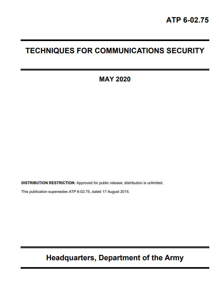 ATP 6-02.75是针对通信安全材料用户的主要理论出版物。该出版物由六章组成: