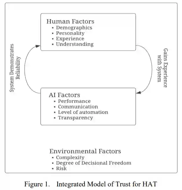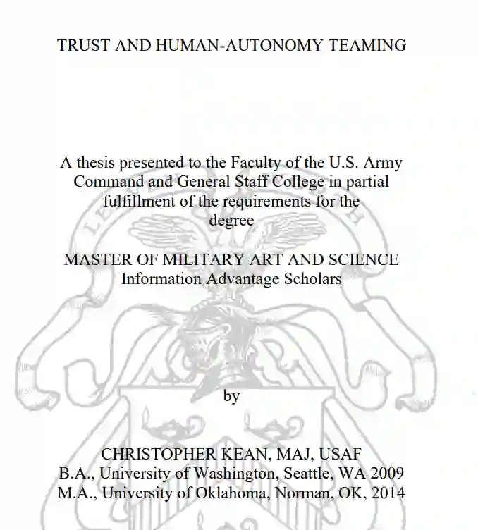 本研究论文旨在探讨人类信任的影响因素,因为它与人类-自主团队合作有关。研究采用混合方法,通过在线调查实验进行。实验分析了几个自变量和一个因变量(对人工智能(AI)系统的信任)。自变量包括个人的数字素养、人工智能系统的透明程度以及参与者对人工智能系统能力/性能的经验水平。研究人员给参与者提供了一个假定的小故事,通过随机处理来测量自变量,在这个故事中,参与者扮演了一个与假定的人工智能系统配对的操作团队中的首席规划师的角色。结果表明,无论处理条件如何,人工智能的基本信任水平都非常重要。最后,这项研究强调,人工智能系统的透明度对提高信任度的作用可能比以前想象的更加有限。