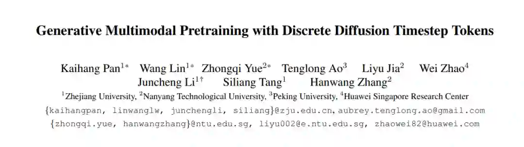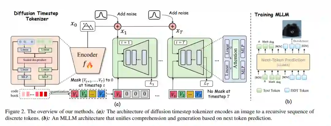 近期在多模态大型语言模型(MLLMs)领域的研究致力于通过结合大型语言模型(LLM)与扩散模型(分别在各自任务中处于最先进水平),实现视觉理解与生成的统一。现有方法通常依赖于空间视觉令牌,即将图像块编码后按照空间顺序(例如光栅扫描顺序)排列。然而,我们指出,空间令牌缺乏语言中固有的递归结构,因此形成了一种大型语言模型难以掌握的“不可学习语言”。 在本文中,我们通过利用扩散时间步来学习离散的、递归的视觉令牌,从而构建了一种合适的视觉语言。我们提出的视觉令牌能够递归地补偿在噪声图像中随时间步增加而逐步丧失的属性,使扩散模型能够在任意时间步重建原始图像。这一方法使我们能够有效整合大型语言模型在自回归推理方面的优势与扩散模型在精确图像生成方面的优势,在统一框架内实现无缝的多模态理解与生成。 大量实验表明,我们在多模态理解与生成任务上同时达到了优于其他MLLMs的方法性能。项目页面:https://DDTLLaMA.github.io/