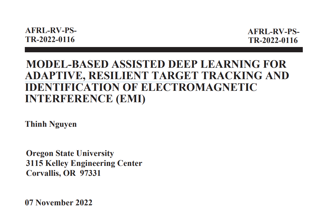 本报告概述了我们在基于模型的自适应目标跟踪以及识别来自电磁干扰(EMI)源的卫星欺骗和干扰攻击方面所做的研究工作。我们假设可以利用不同电磁干扰源的射频(RF)特征来识别和跟踪主动和被动电磁干扰源。射频信号被输入一个基于模型的深度神经网络(DNN),该网络可对不同物体进行分类和跟踪。